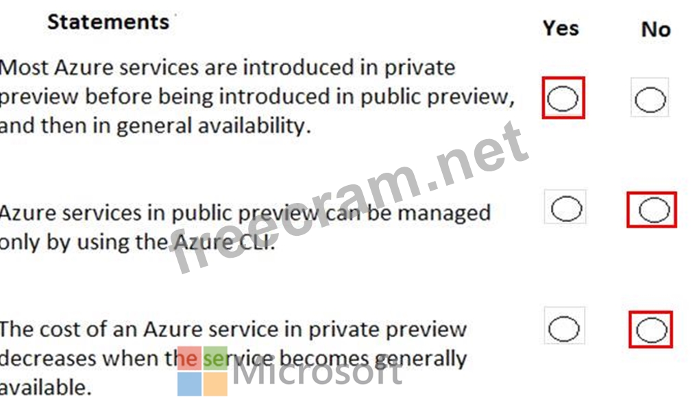 For each of the following statements, select Yes if the statement is true. Otherwise, select No.