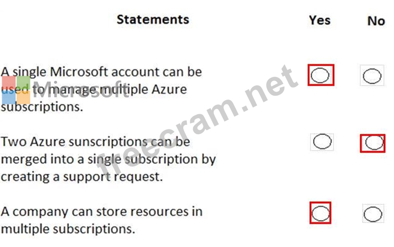 For each of the following statements, select Yes if the statement is true. Otherwise, select No.