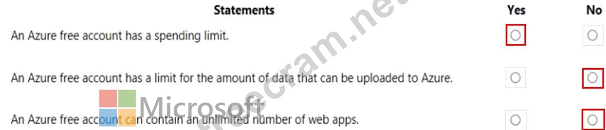 For each of the following statements, select Yes if the statement is true. Otherwise, select No.