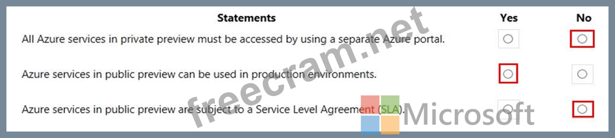 For each of the following statements, select Yes if the statement is true. Otherwise, select No.