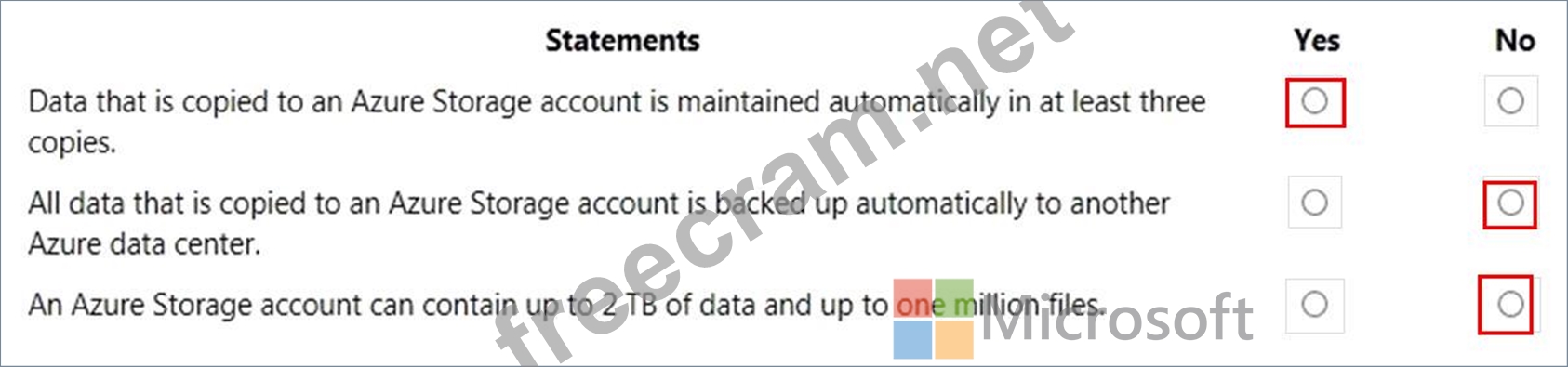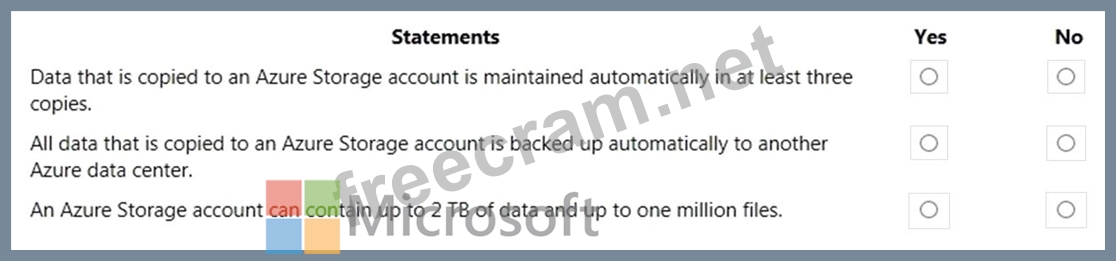 For each of the following statements, select Yes if the statement is true. Otherwise, select No.