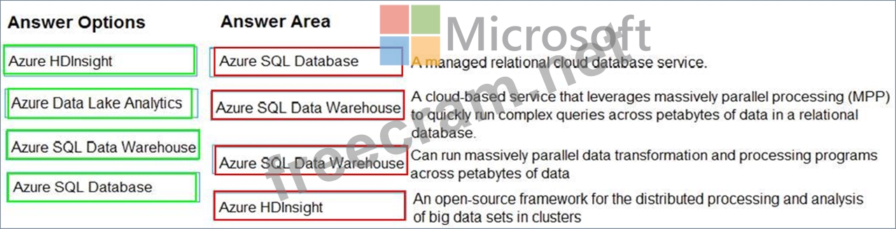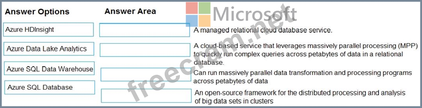 Instructions: To answer, drag the appropriate Azure service from the column on the left to its description on the right. Each service may be used once, more than once, or not at all.
