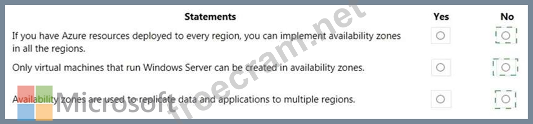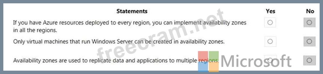 Question 260: HOTSPOT For each of the following statements, select Yes if ...