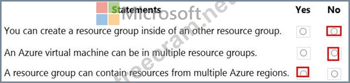 For each of the following statements, select Yes if the statement is true. Otherwise, select No.