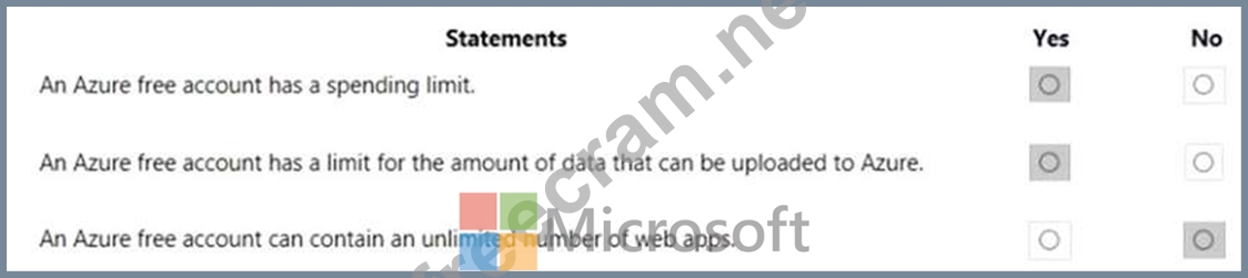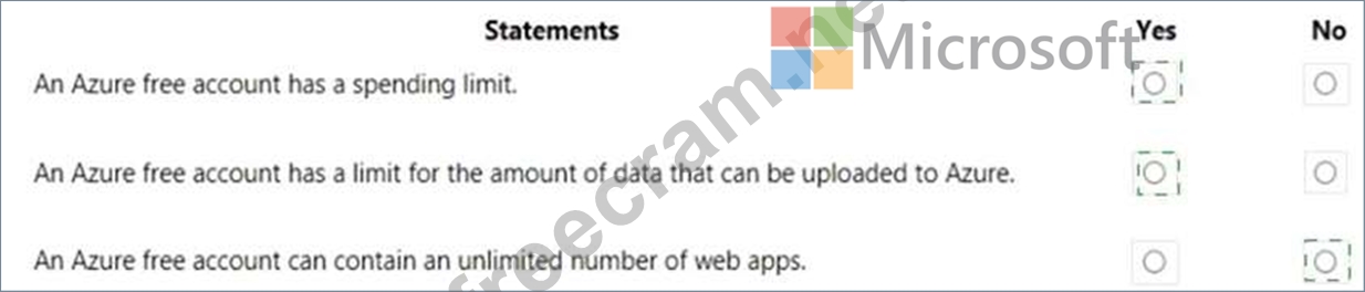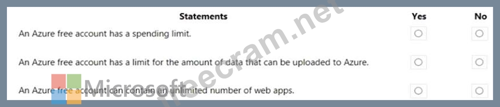 For each of the following statements, select Yes if the statement is true. Otherwise, select No.