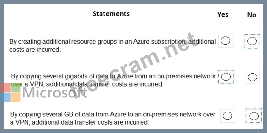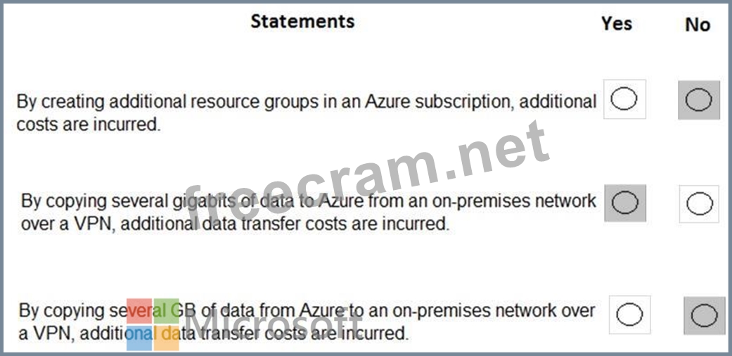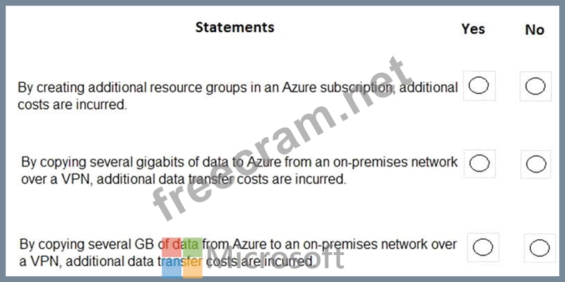 Question 260: HOTSPOT For each of the following statements, select Yes if ...