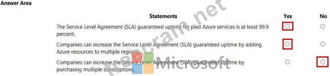 Question 42: What is guaranteed in an Azure Service Level Agreement (SLA)...