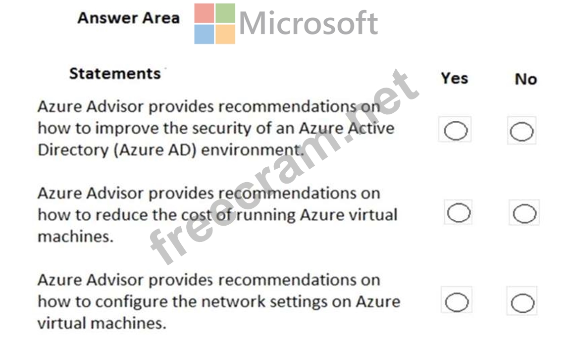 Question 260: HOTSPOT For each of the following statements, select Yes if ...