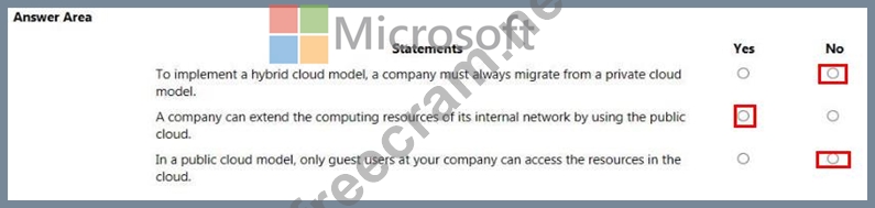 Question 260: HOTSPOT For each of the following statements, select Yes if ...