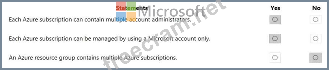 Question 260: HOTSPOT For each of the following statements, select Yes if ...