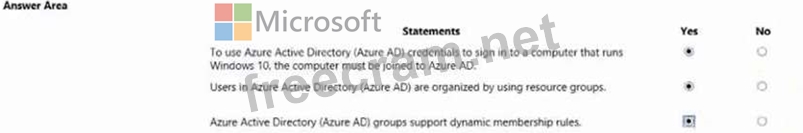 Question 260: HOTSPOT For each of the following statements, select Yes if ...