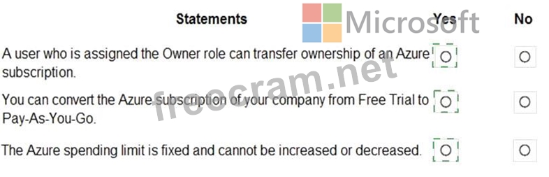 For each of the following statements, select Yes if the statement is true. Otherwise, select No.