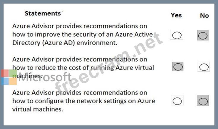 For each of the following statements, select Yes if the statement is true. Otherwise, select No. NOTE: Each correct selection is worth one point.
