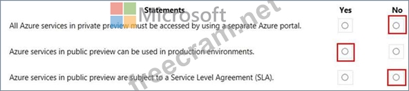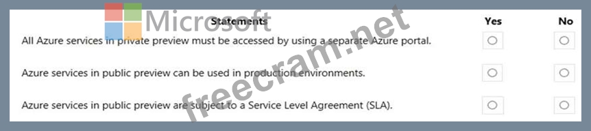 Question 260: HOTSPOT For each of the following statements, select Yes if ...