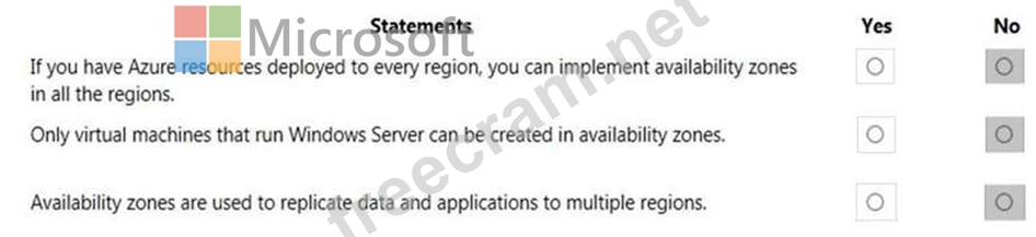 For each of the following statements, select Yes if the statement is true. Otherwise, select No.