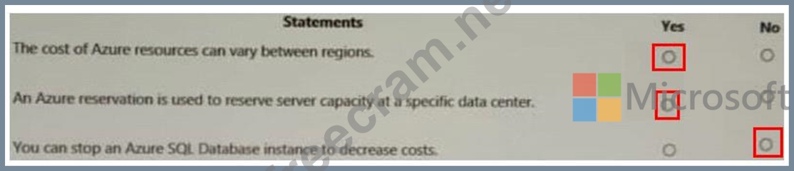 Question 260: HOTSPOT For each of the following statements, select Yes if ...