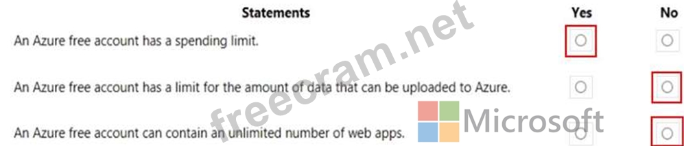 For each of the following statements, select Yes if the statement is true. Otherwise, select No.