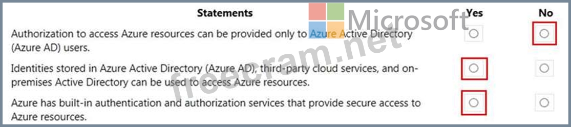 For each of the following statements, select Yes if the statement is true. Otherwise, select No.
