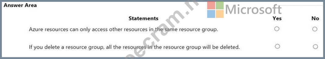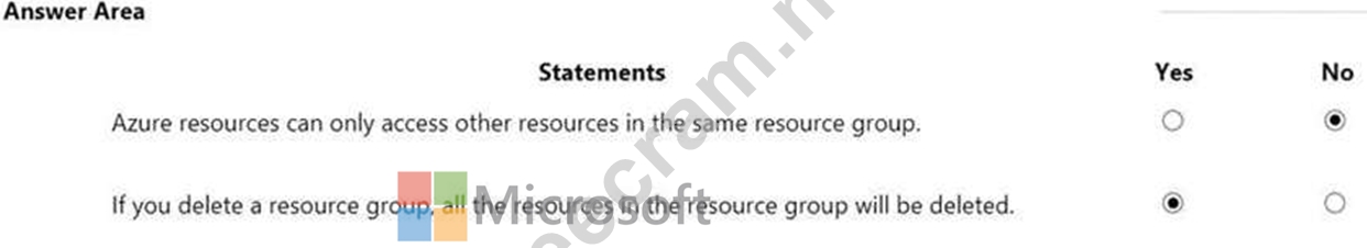 For each of the following statements, select Yes if the statement is true. Otherwise, select No. NOTE: Each correct selection is worth one point.