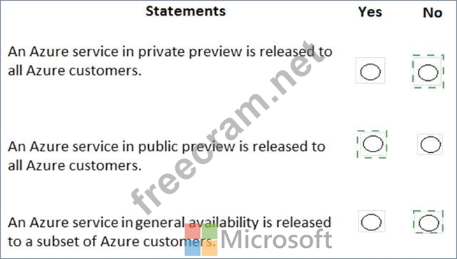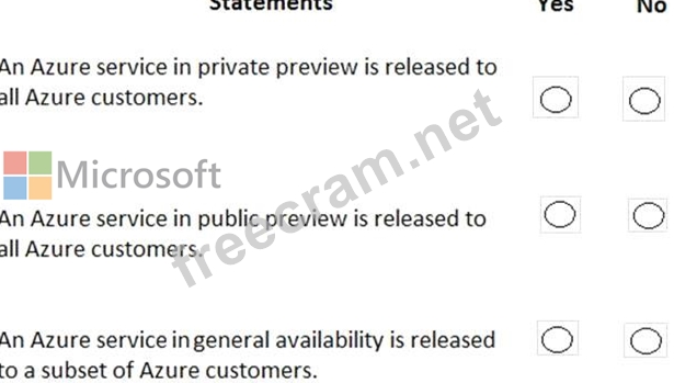 For each of the following statements, select Yes if the statement is true. Otherwise, select No.