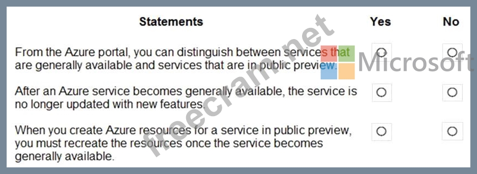 For each of the following statements, select Yes if the statement is true. Otherwise, select No.