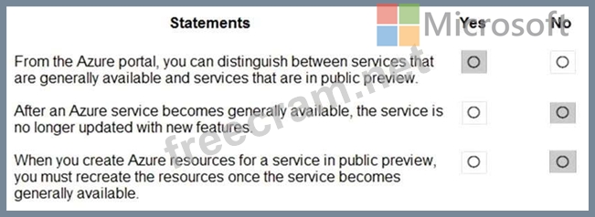 Question 260: HOTSPOT For each of the following statements, select Yes if ...