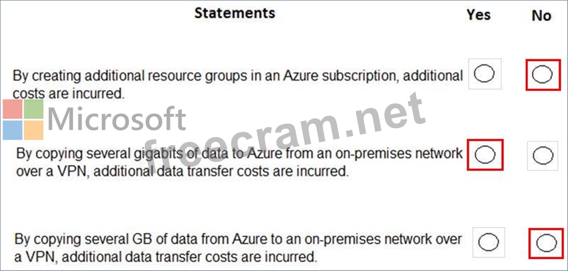 Question 260: HOTSPOT For each of the following statements, select Yes if ...