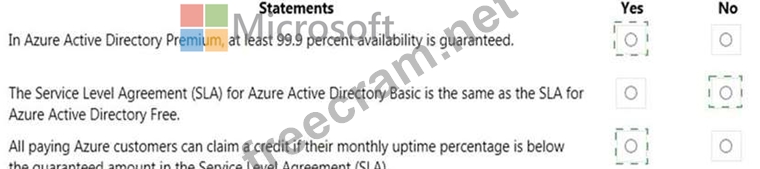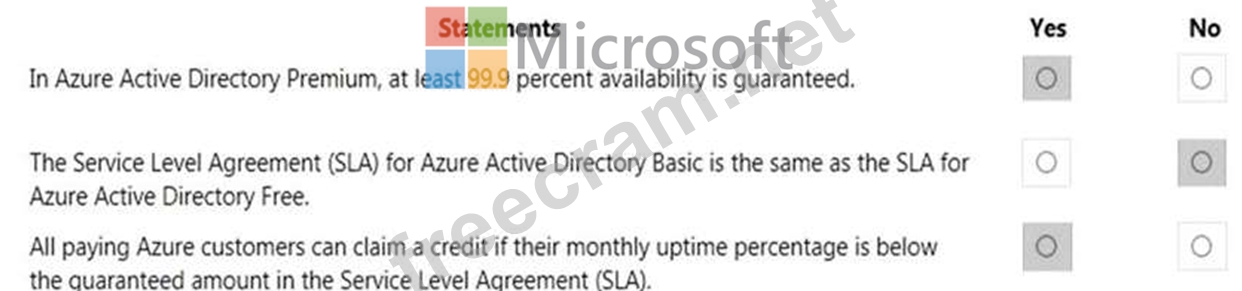 For each of the following statements, select Yes if the statement is true. Otherwise, select No.