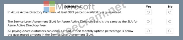 Question 260: HOTSPOT For each of the following statements, select Yes if ...