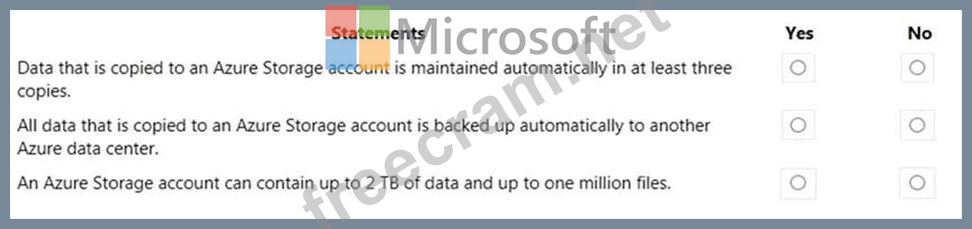 Question 260: HOTSPOT For each of the following statements, select Yes if ...