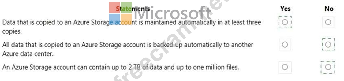 For each of the following statements, select Yes if the statement is true. Otherwise, select No.