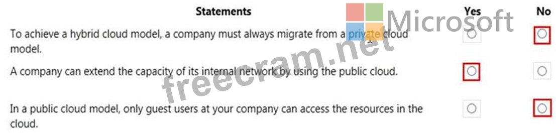 For each of the following statements, select Yes if the statement is true. Otherwise, select No.
