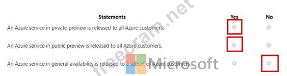 For each of the following statements, select Yes if the statement is true. Otherwise, select No.
