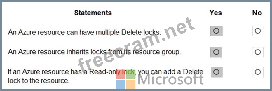 Question 260: HOTSPOT For each of the following statements, select Yes if ...