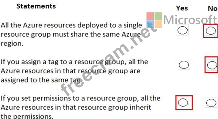 Question 260: HOTSPOT For each of the following statements, select Yes if ...