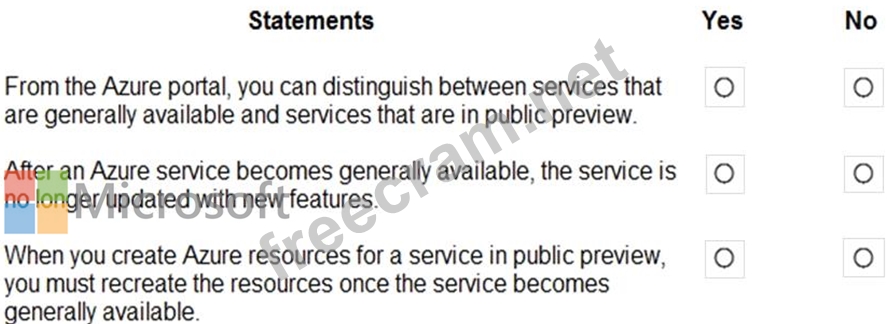 For each of the following statements, select Yes if the statement is true. Otherwise, select No.