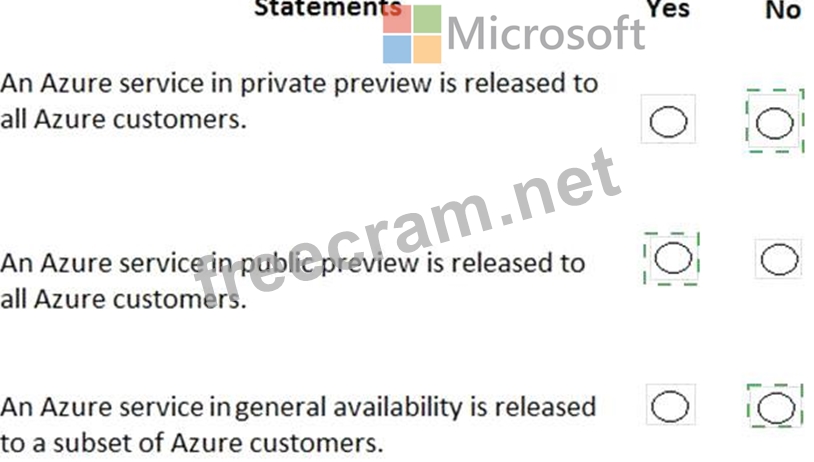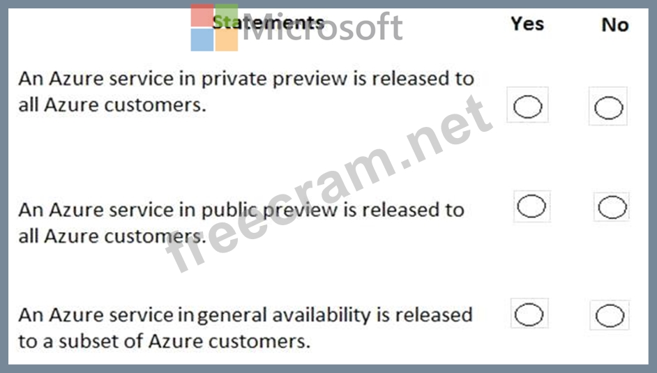 For each of the following statements, select Yes if the statement is true. Otherwise, select No.