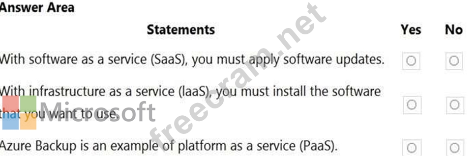 For each of the following statements, select Yes if the statement is true. Otherwise, select No.