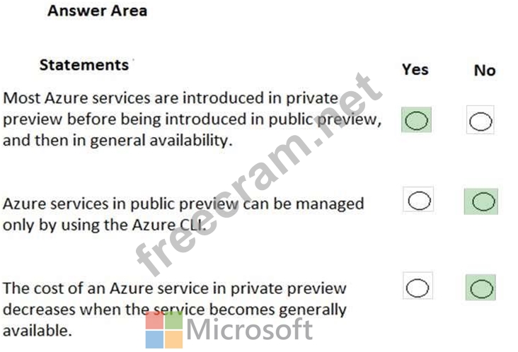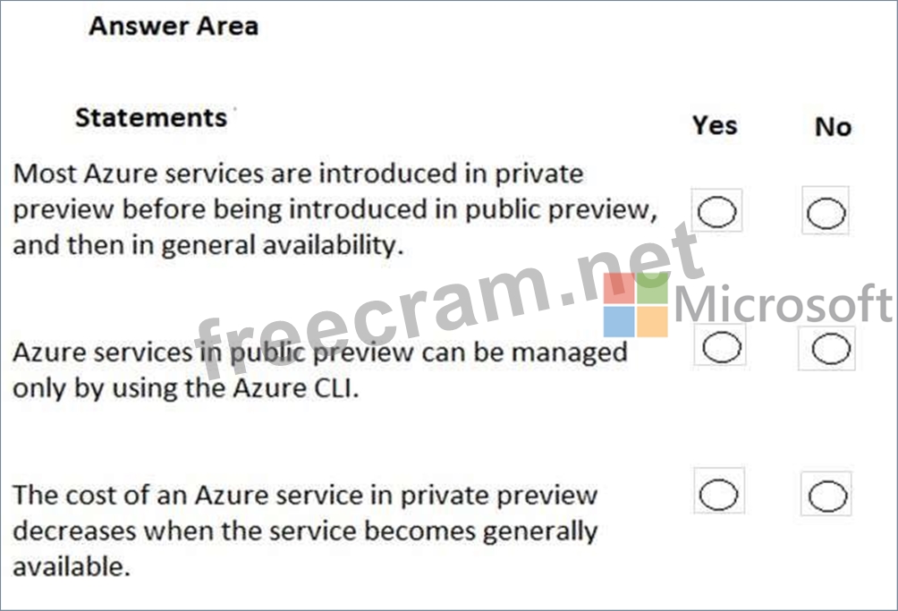 For each of the following statements, select Yes if the statement is true. Otherwise, select No.