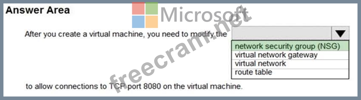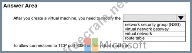 In this question, we need to add a rule to the network security group to allow the connection to the virtual machine on port 8080.