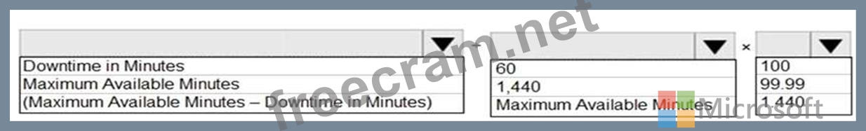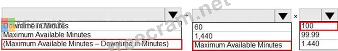 How should you calculate the monthly uptime percentage? To answer, select the appropriate options in the answer area.