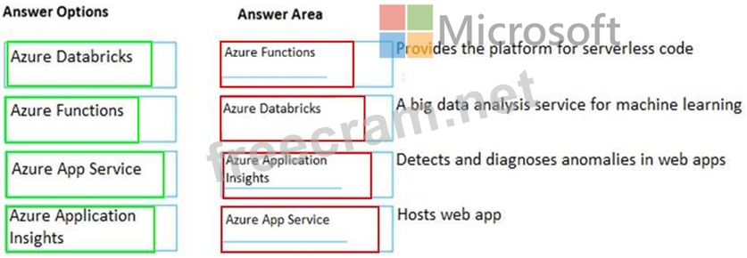 Instructions: To answer, drag the appropriate Azure service from the column on the left to its description on the right. Each service may be used once, more than once, or not at all.
