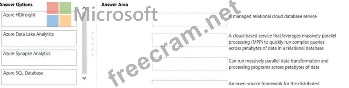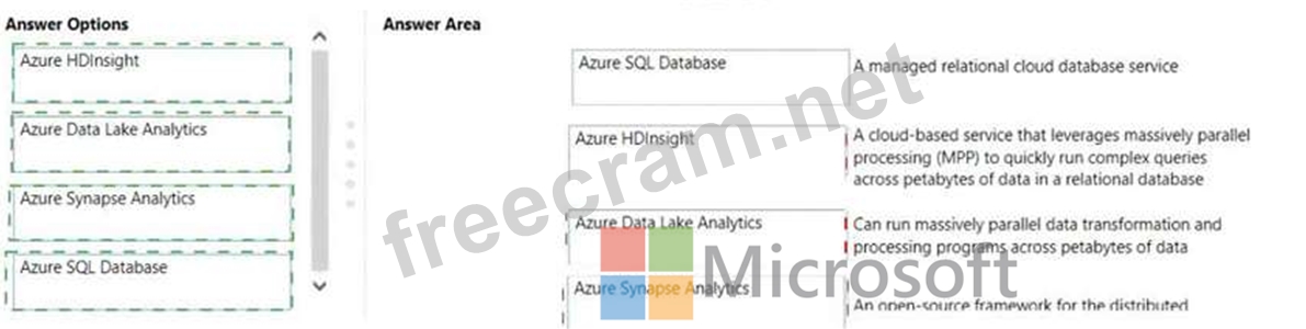 Instructions: To answer, drag the appropriate Azure service from the column on the left to its description on the right. Each service may be used once, more than once, or not at all NOTE: Each correct match is worth one point.
