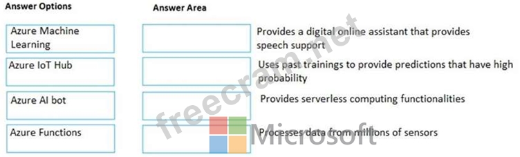 Instructions: To answer, drag the appropriate Azure service from the column on the left to its description on the right. Each service may be used once, more than once, or not at all.