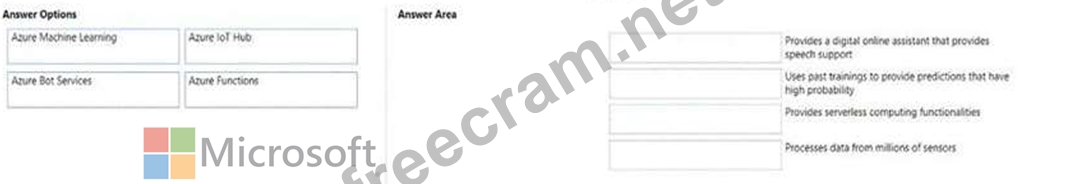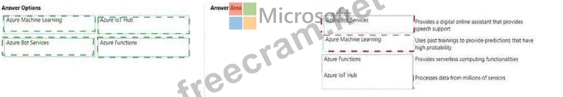 Instructions: To answer, drag the appropriate Azure service from the column on the left to its description on the right. Each service may be used once, more than once, or not at all NOTE: Each correct match is worth one point.