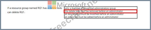 Question 74: You create a resource group named RG1 in Azure Resource Mana...