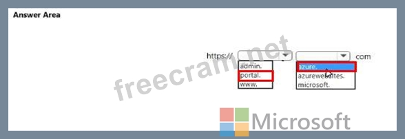 To which URL should you connect to manage all the Azure resources? To answer, select the appropriate options in the answer area.