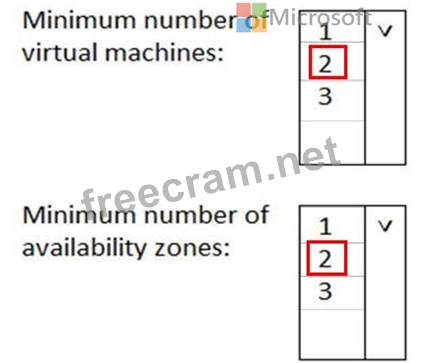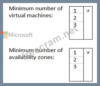 What is the minimum number of virtual machines and the minimum number of availability zones you should recommend for the deployment? To answer, select the appropriate options in the answer area.