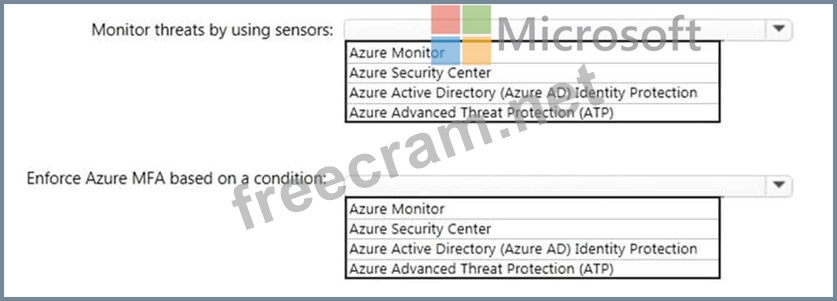 To monitor threats by using sensors, you would use Azure Advanced Threat Protection (ATP).