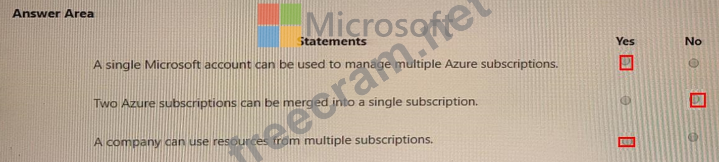 For each of the following statements, select Yes if the statement is true. Otherwise, select No.